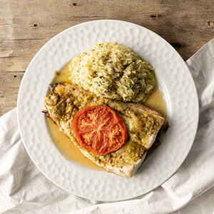 Φιλέτο φρέσκου ψαριού με pesto βασιλικού παρμεζάνα 300×300