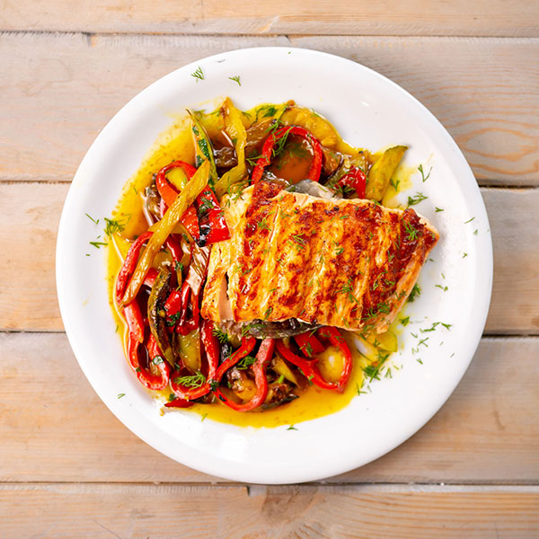 Φιλέτο Σολομού με σωτέ λαχανικά